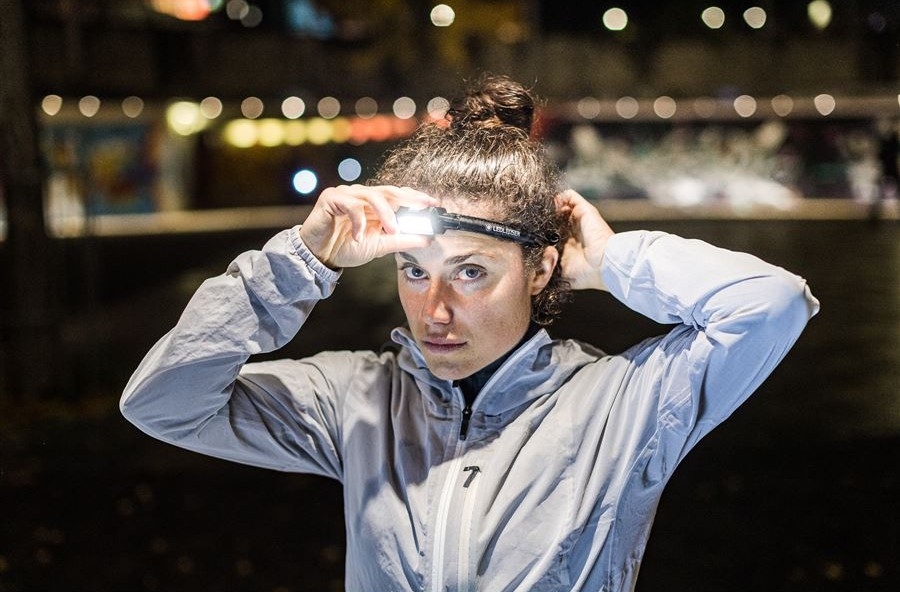 • Kraftfuld og let pandelampe designet specielt til by- og terrænløbere, der har brug for stærkt og jævnt lys under nattræning.