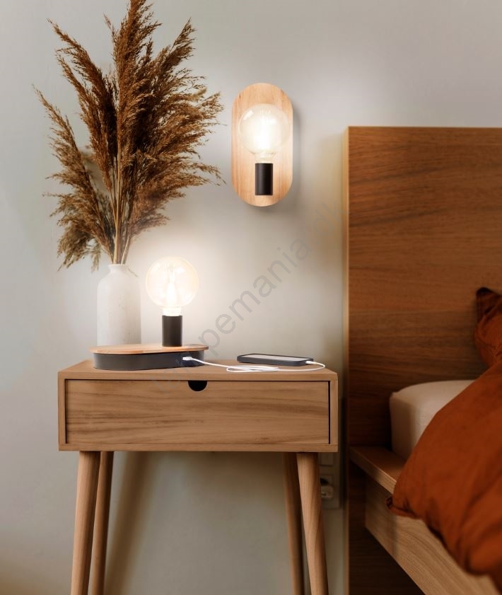 Ledvance - Touch bordlampe med USB-stik DECOR WOOD 1xE27/8W/230V gummitræ