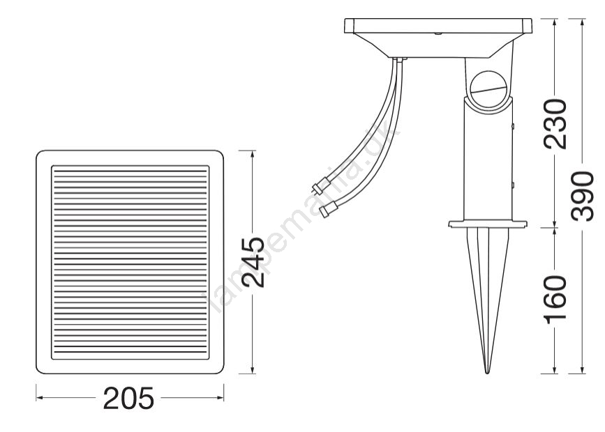 • Efter tilslutning til elnettet skifter armaturet automatisk til netstrøm, så snart solpanelets batteri er afladet.