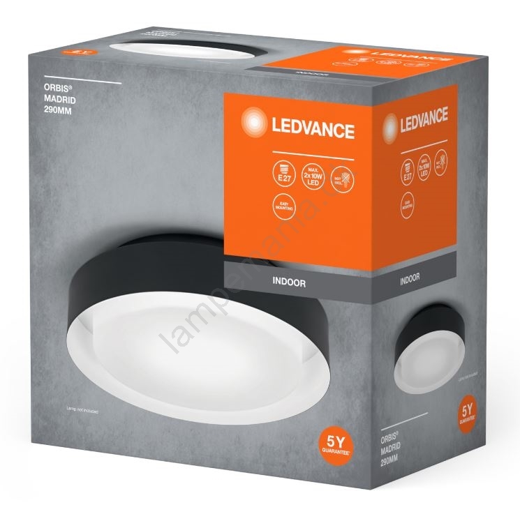 Ledvance - Loftlampe ORBIS MADRID 2xE27/10W/230V sort er kendetegnet ved et flot og funktionelt design.  En lyspære med E27-fatning passer til denne lampe. Her kan du købe andre pærer til fordelagtige priser. Du får en interessant tilføjelse til dit hjem.