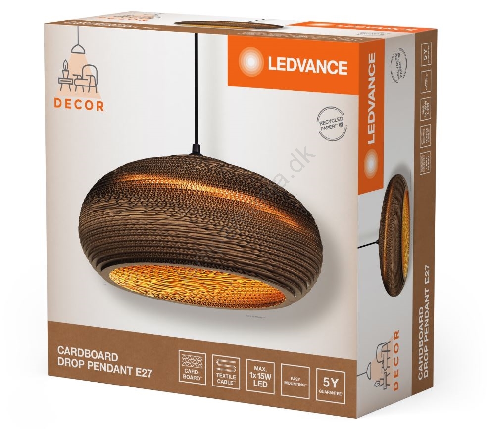 Ledvance - Pendel DECOR CARDBOARD 1xE27/15W/230V diameter 40 cm er kendetegnet ved et flot og funktionelt design.  En lyspære med E27-fatning passer til denne lampe. Her kan du købe andre pærer til fordelagtige priser. Du får en interessant tilføjelse til dit hjem.
