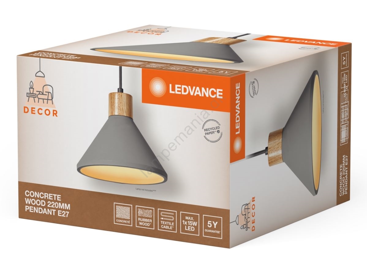 Ledvance - Pendel DECOR CONCRETE 1xE27/15W/230V diameter 22 cm beton grå er kendetegnet ved et flot og funktionelt design.  En lyspære med E27-fatning passer til denne lampe. Her kan du købe andre pærer til fordelagtige priser. Du får en interessant tilføjelse til dit hjem.
