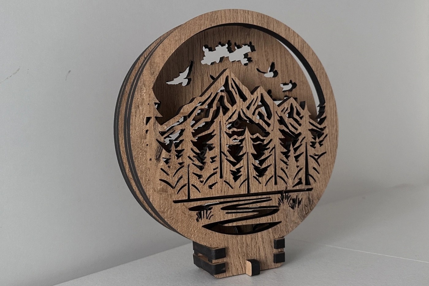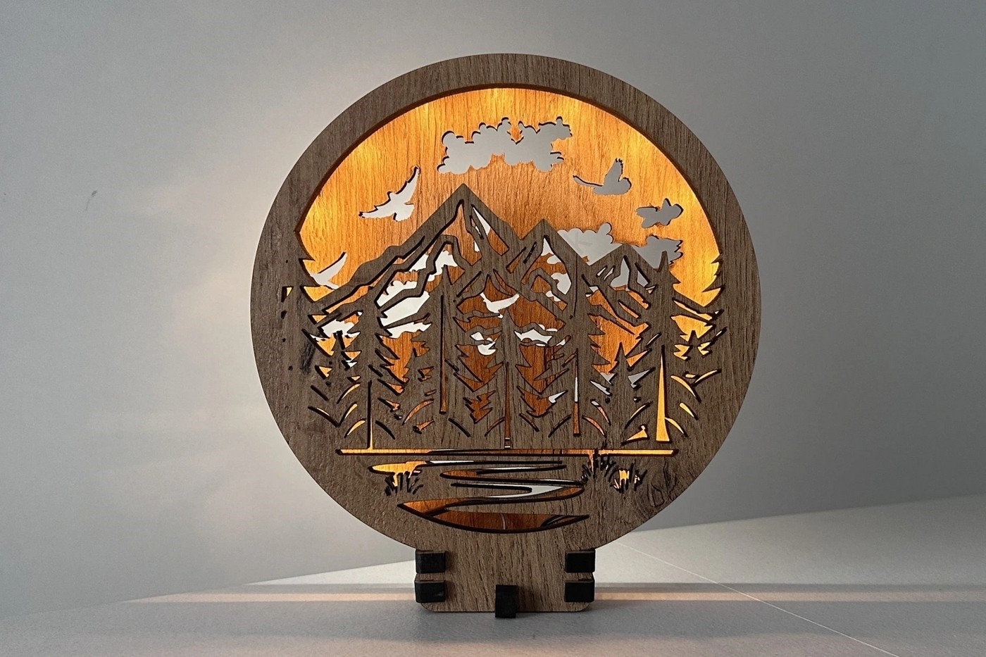 Li-Go 23583/DUB2 - Dæmpbar LED-borddekoration LED/12W/230V 20x22 cm eg/Bjerge og skov