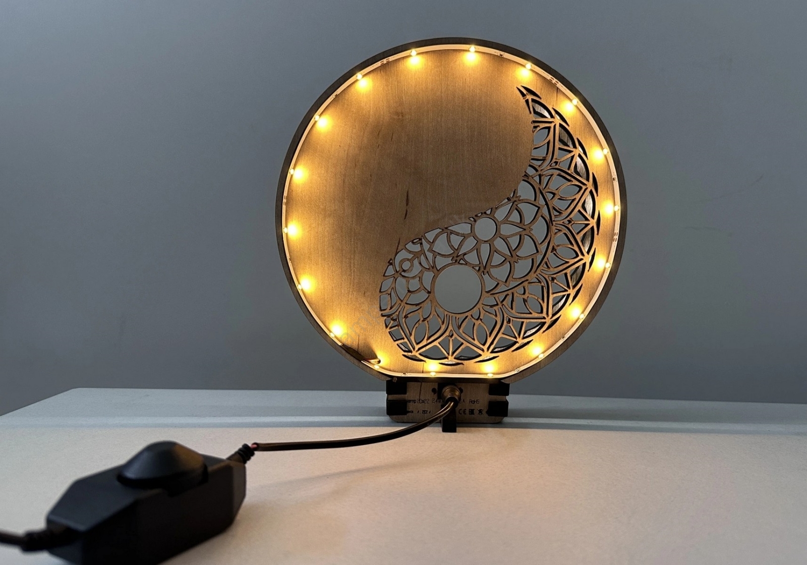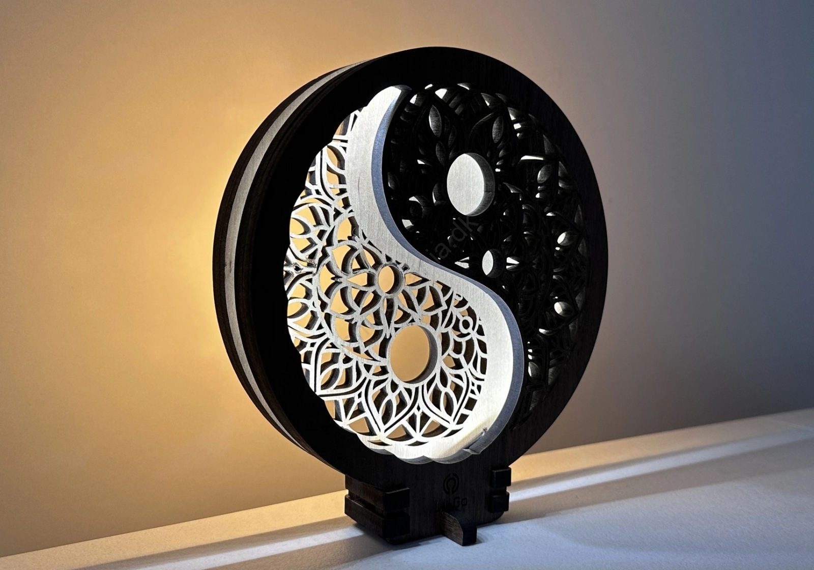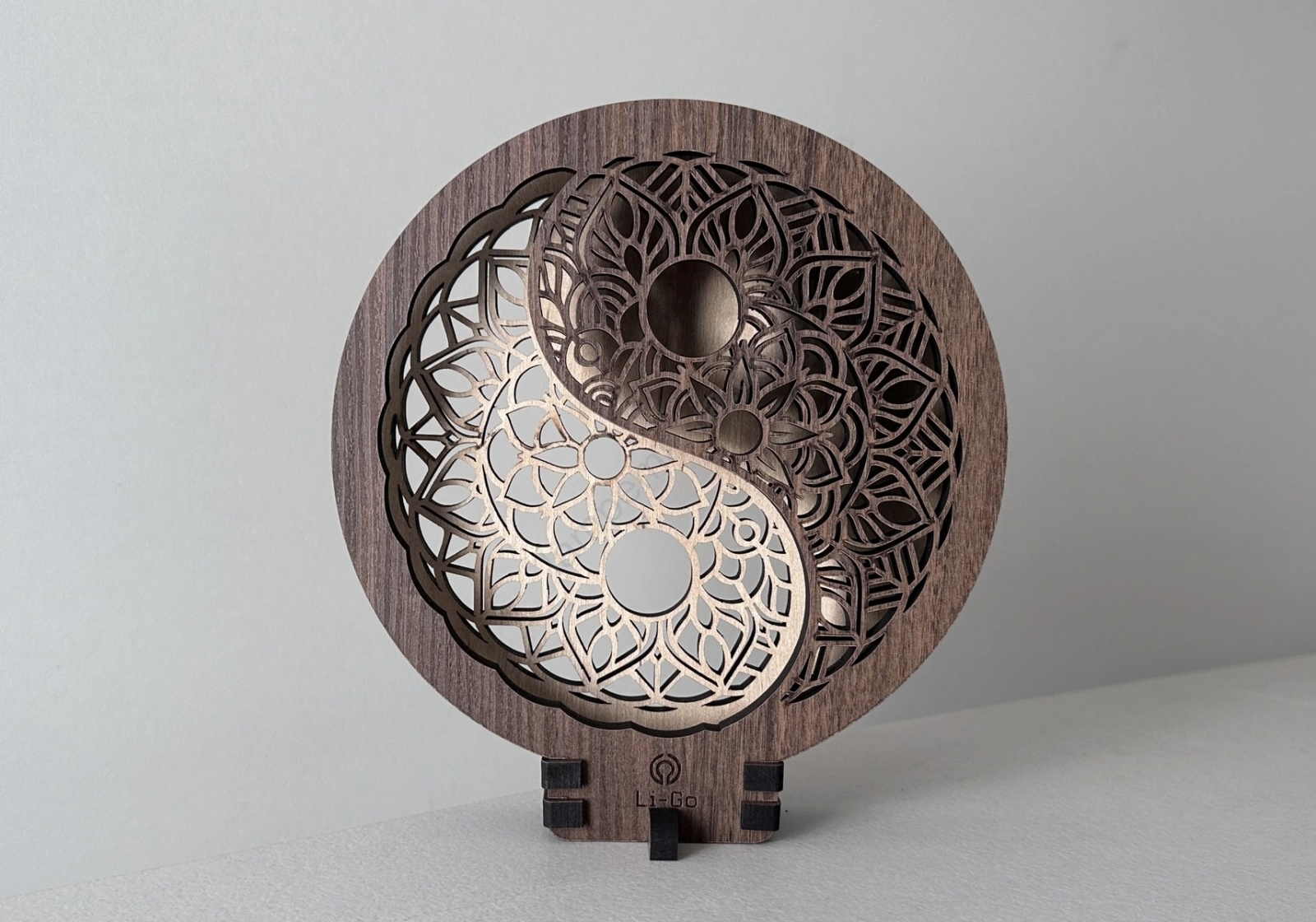 Li-Go 23607/O - LED-dæmpbar borddekoration LED/12W/230V 20x22 cm valnød/Yin Yang