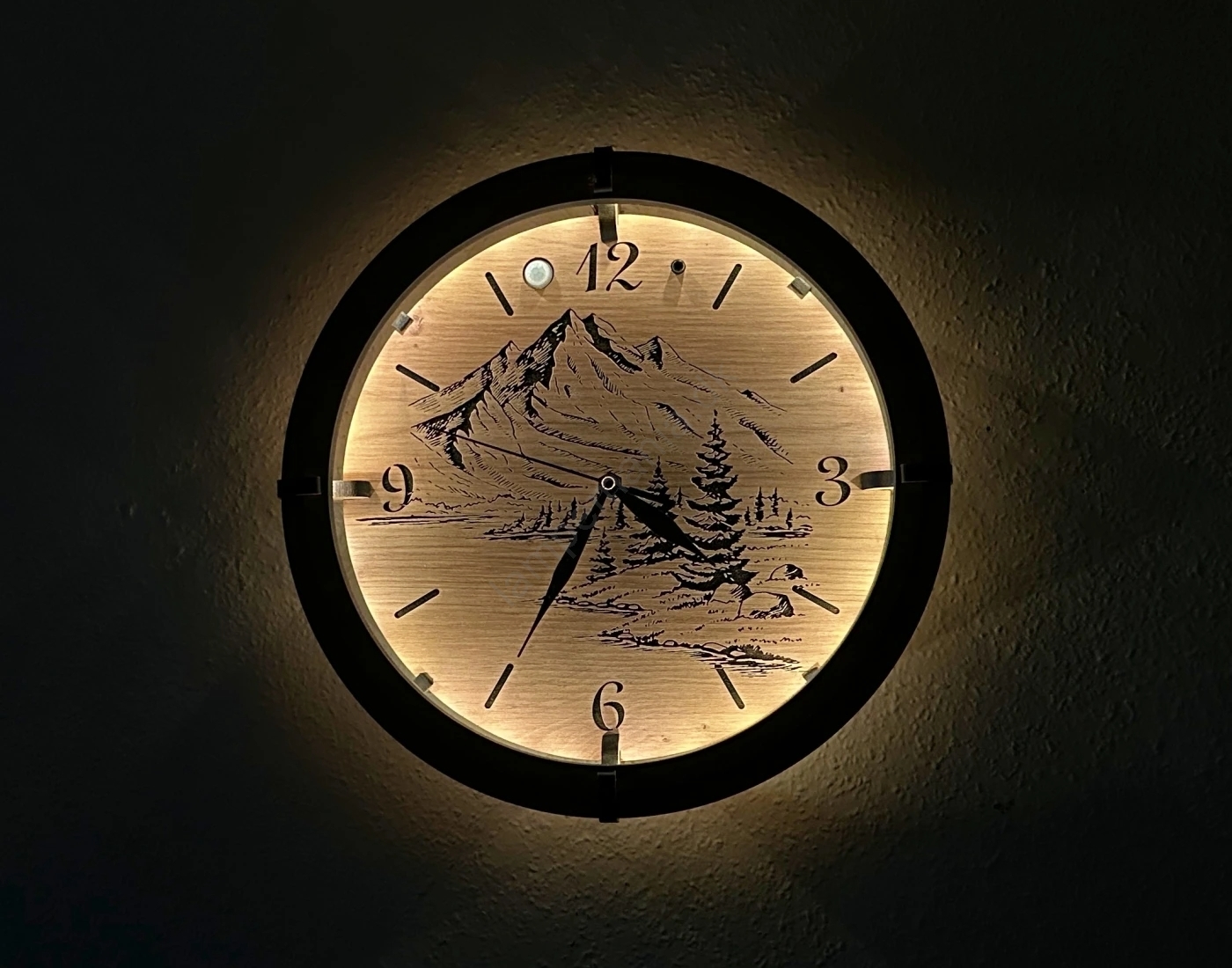 Li-Go 23697/DUB/BAT2 - LED-dæmpbart vægur med bevægelsessensor LED/10W/5V 20000 mAh + 1xAA Ø 32 cm eg/Bjerge