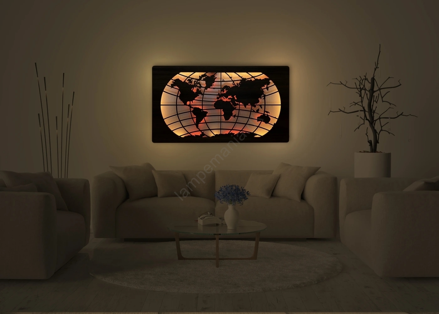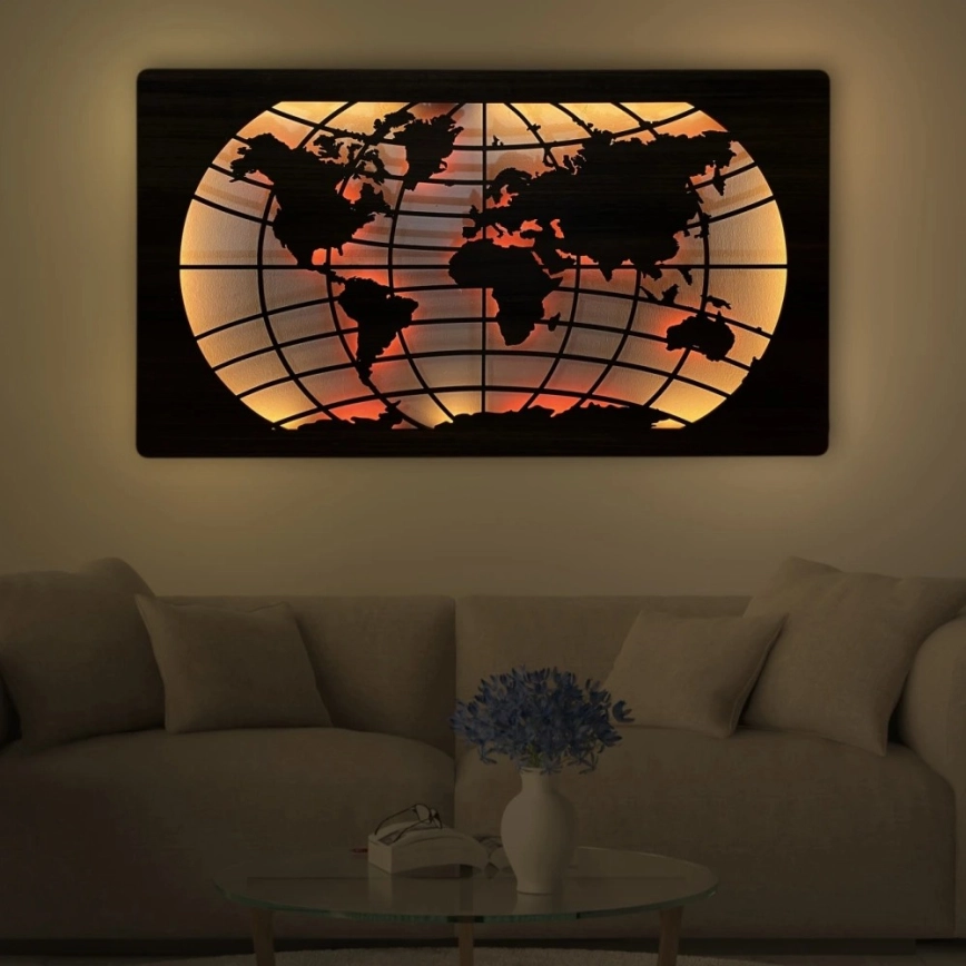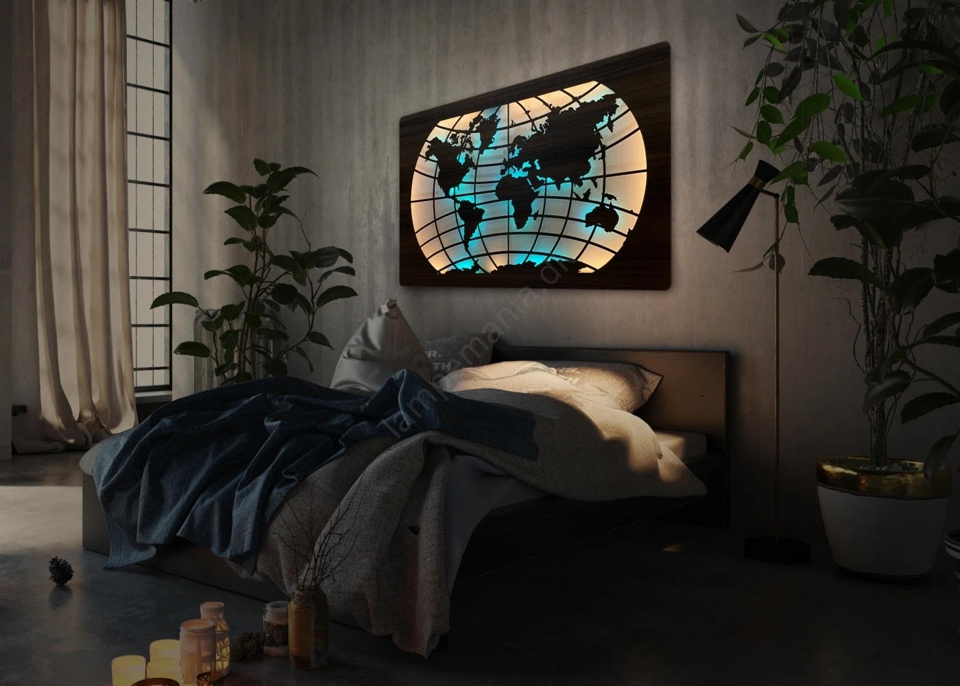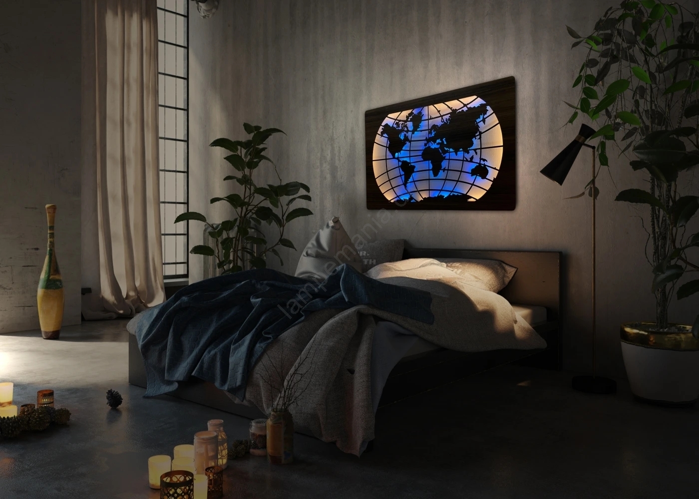 Li-Go 4709/DUB2 - LED RGBW Dæmpbar vægdekoration LED/24W/230V 125x74 cm eg/Verdenskort med breddegrader + fjernbetjening