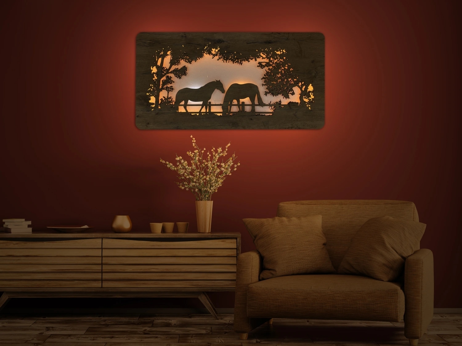 Li-Go 5012/B/4 - Dæmpbar LED-vægdekoration LED/10W/5V 30000 mAh 120x60 cm eg/heste + fjernbetjening