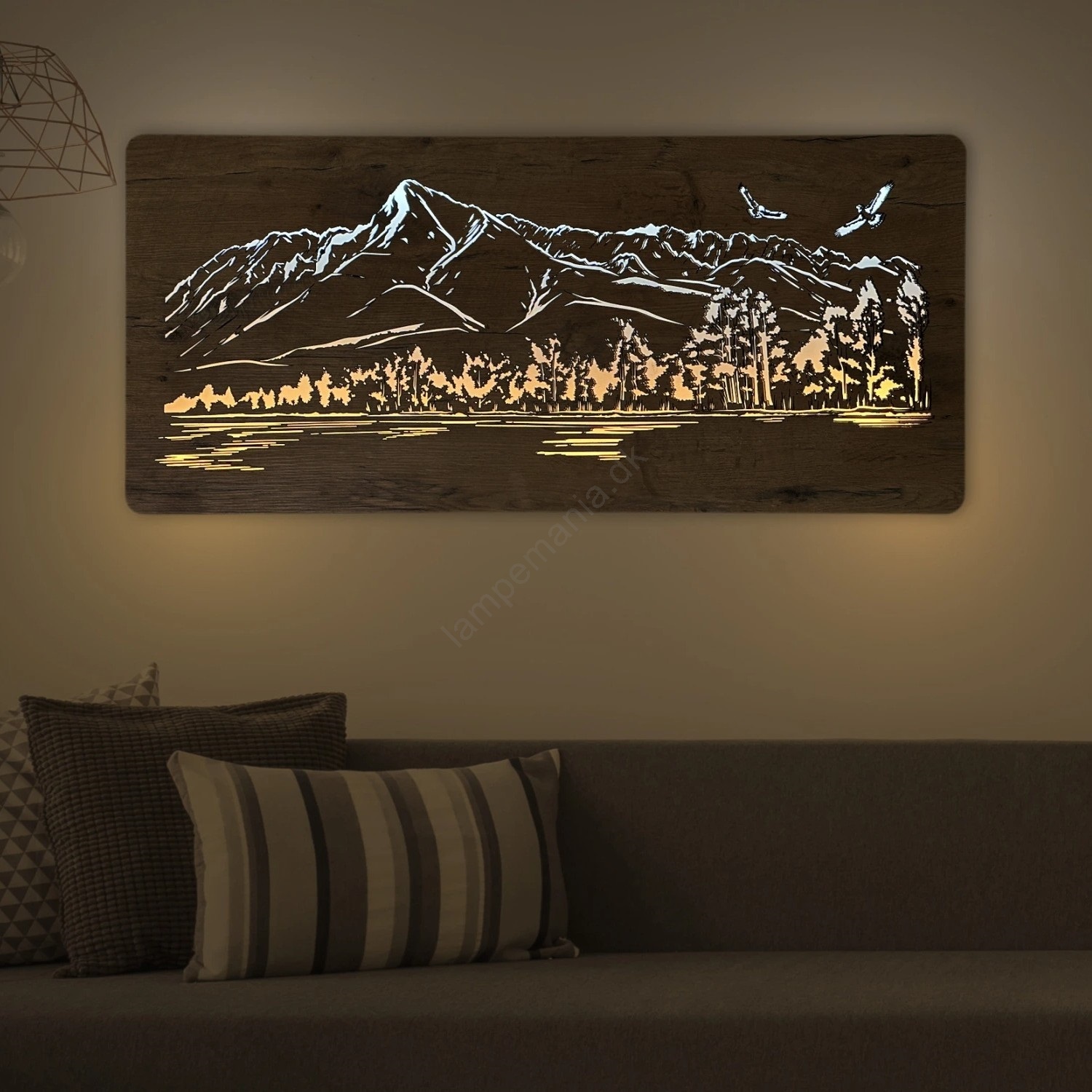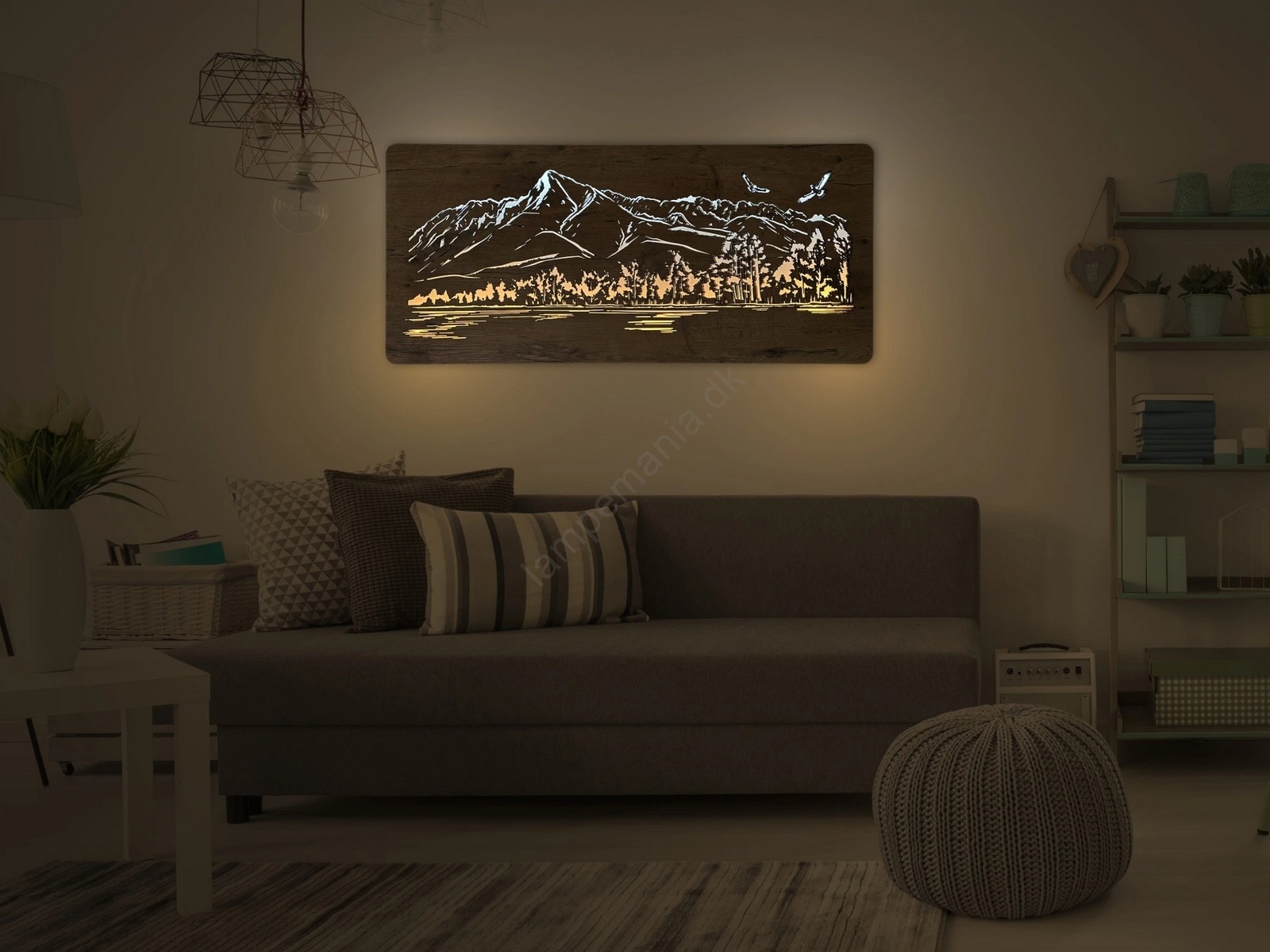 Li-Go 5589/A/DUB2 - LED dæmpbar vægdekoration LED/10W/5V 30000 mAh 110x50 cm eg/Bjerge med fugle