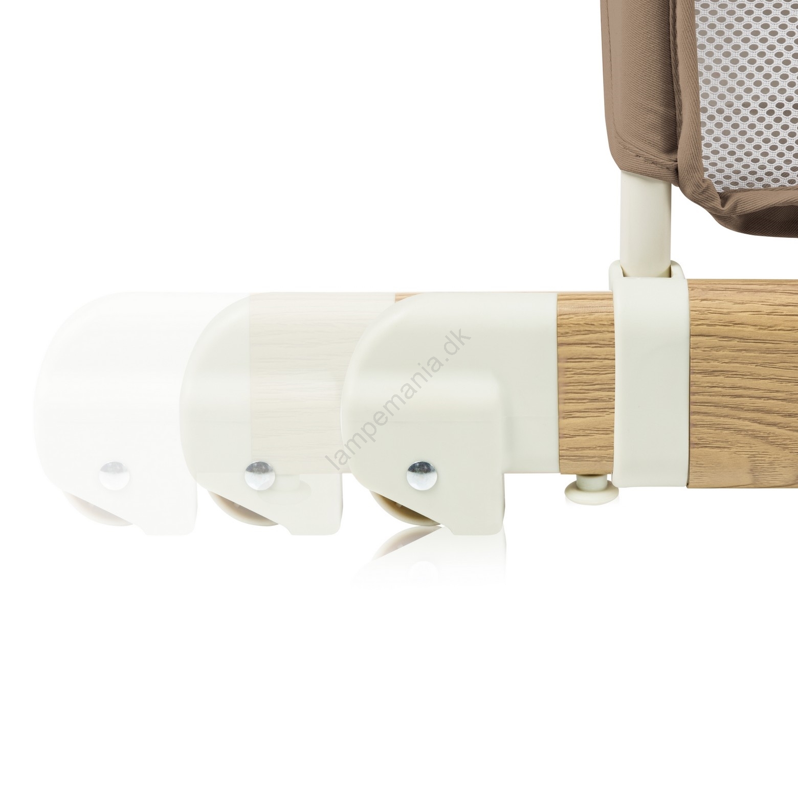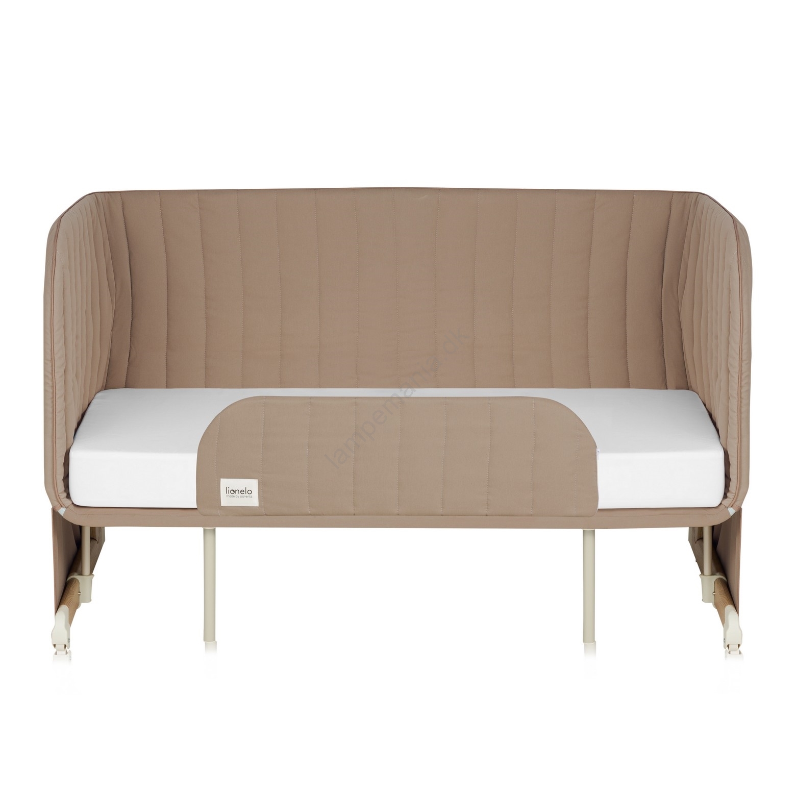 • Sideseng med aftagelig side og justerbare ben, så den kan tilpasses forældres senghøjde.