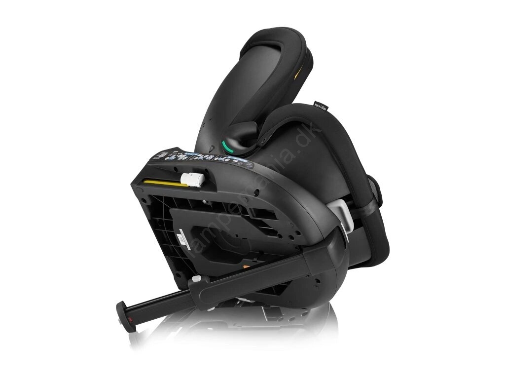 • Den er udstyret med en base EasyTurn drejbar 360°, hvilket gør det lettere at få adgang til autostolen og korrekt fastgørelse af selerne, og først og fremmest reducerer belastningen på forældrenes ryg ved på- og afsætning af barnet i autostolen.