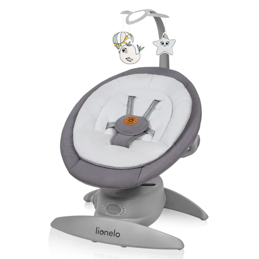 Lionelo - Babygynge med musik MELL Grey Stone 4xAA + fjernbetjening
