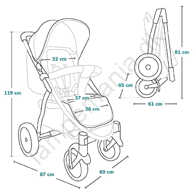 • 9-trins indstilling af håndtaget (81 - 121 cm) for perfekt tilpasning til forælderens højde.