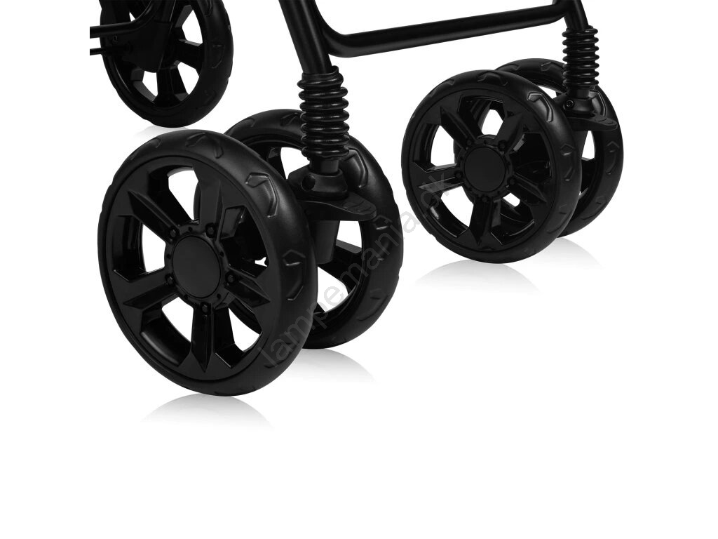 • De forreste hjul er desuden svingbare 360° for ekstra komfort og kan låses til lige kørsel.