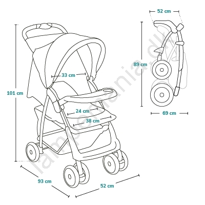 • Stor liggeflade (op til 91 cm i udfoldet tilstand) og høj kaleche sikrer komfortabel brug også for ældre børn.