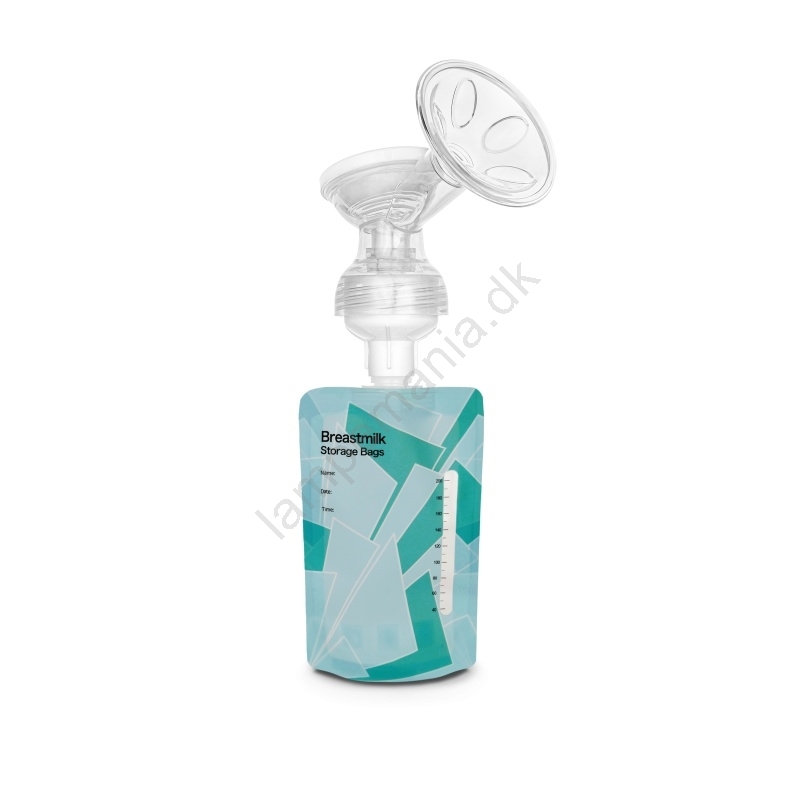 • Leveres med to opbevaringsposer til modermælk, et bomuldsetui til transport og opbevaring af pumpen samt et USB-strømkabel (adapter medfølger ikke).