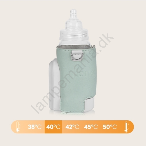 • Vælg nemt et af 5 varmeindstillinger (38, 40, 42, 45 og 50 ℃) og sæt flasken i for at opnå den rette temperatur.