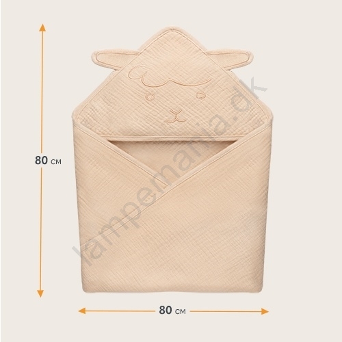 • Hættehåndklæde i blød bomulds-musselin giver maksimal komfort efter hvert bad.