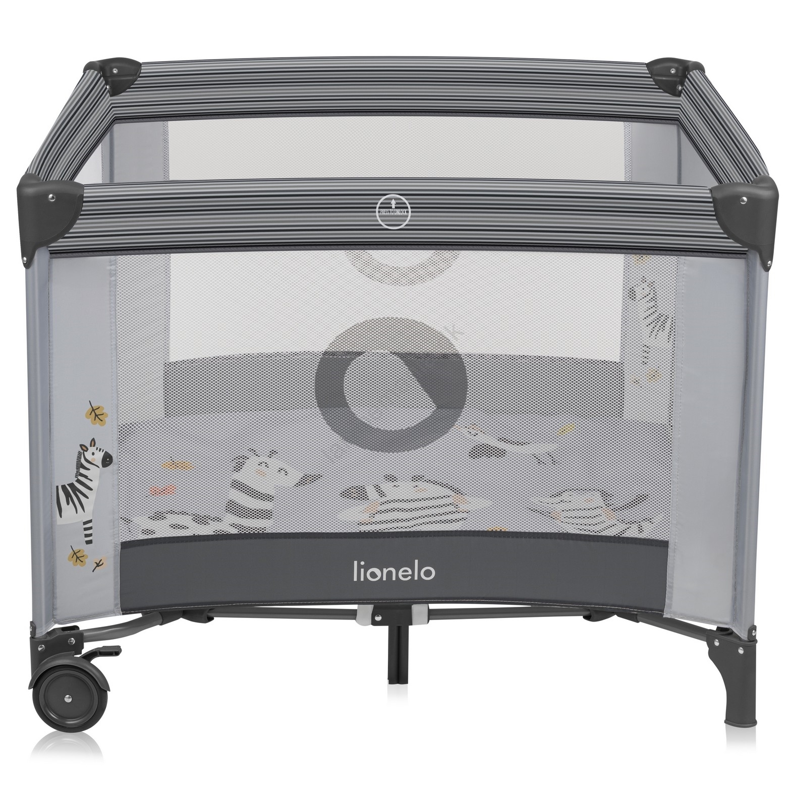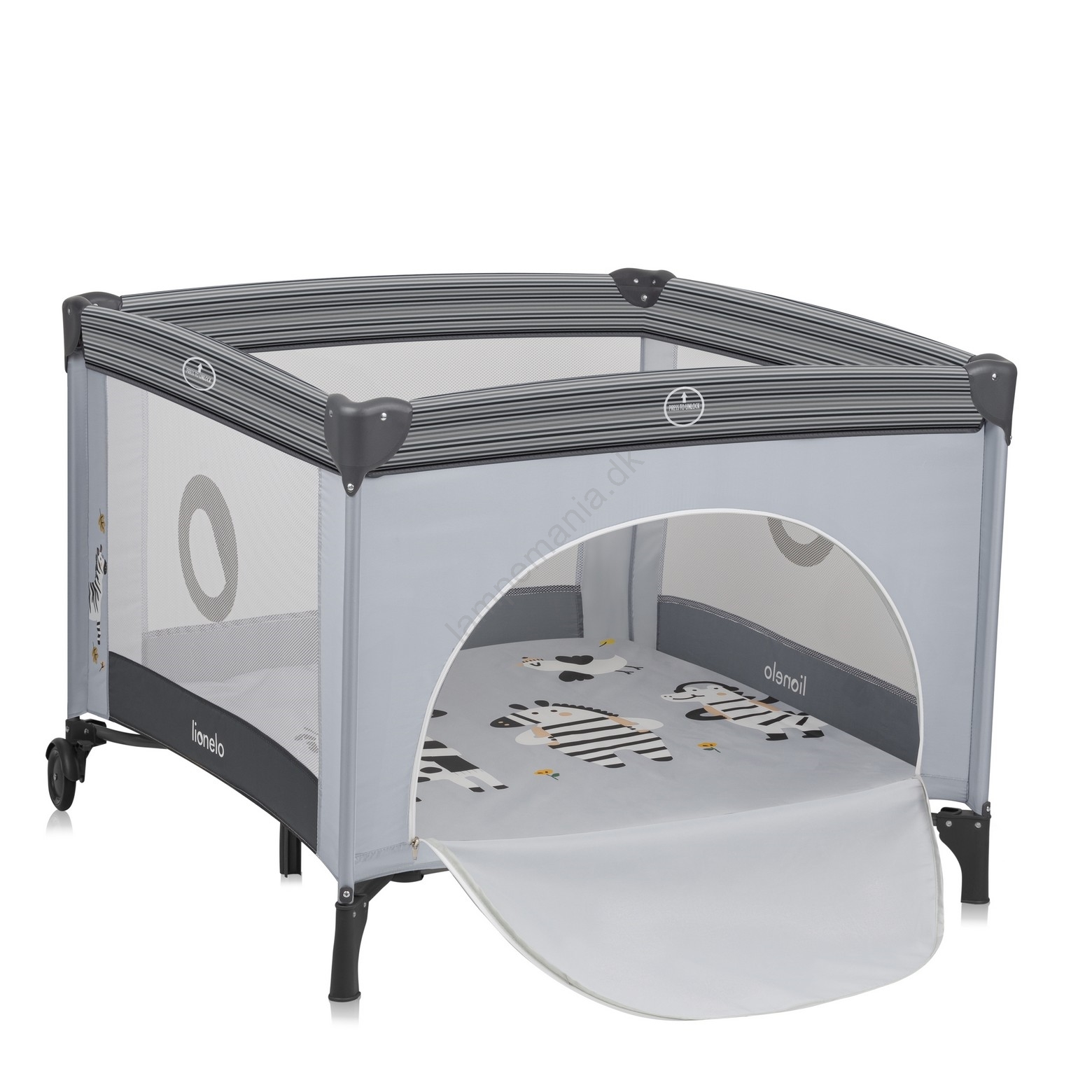 • Med to hjul med bremse kan du nemt flytte legeindhegningen rundt efter behov.