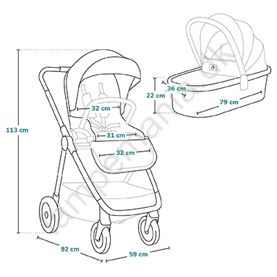 • Tilbehørssæt: fodpose, myggenet, betræk til liggedel, regnslag, forældretaske, kopholder, låsbar opbevaringskurv.