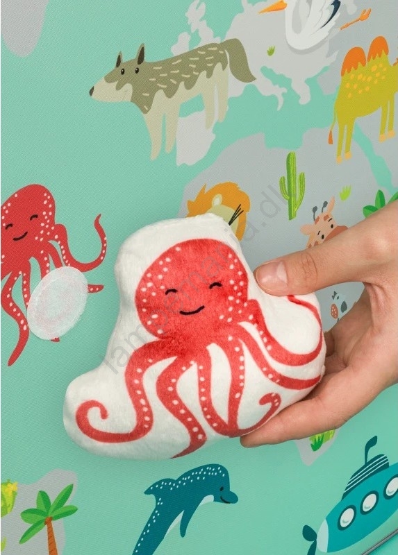 • Har en indbygget måtte med farverige dyreprints og legetøj med velcro, som vækker nysgerrighed og udvikler barnets fantasi og motorik.