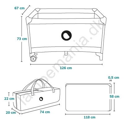 • Kompakte mål efter sammenfoldning og medfølgende transporttaske med håndtag gør det nemt at tage sengen med overalt.