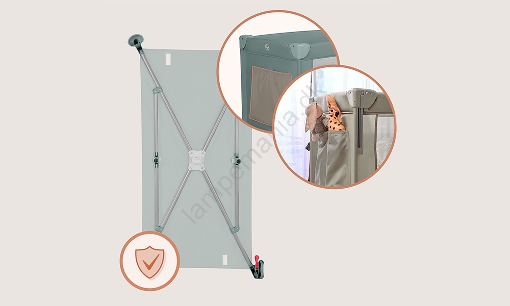 • Sammenklappelig rejseseng, som også kan bruges som legegård.