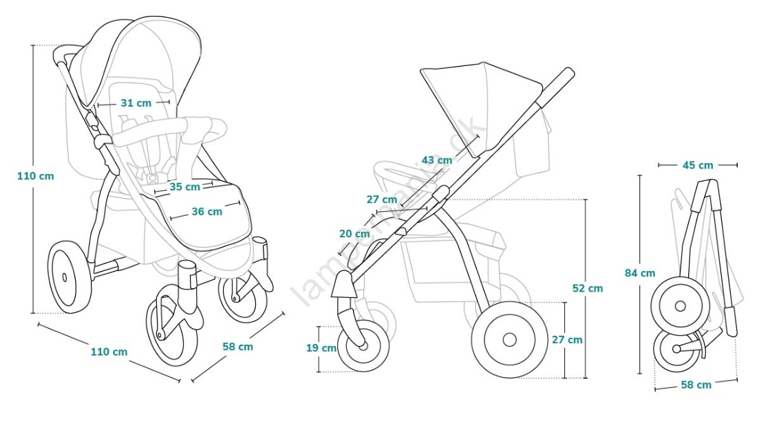 • Det rummelige sæde i kombination med 3-trins indstilling af ryglænet giver barnet mulighed for at hvile behageligt i klapvognen.
