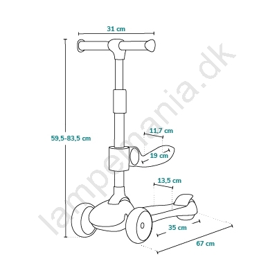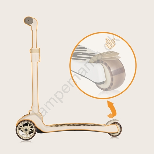 • Løbehjulet kan nemt foldes sammen – tryk blot på knappen og fold det let sammen.