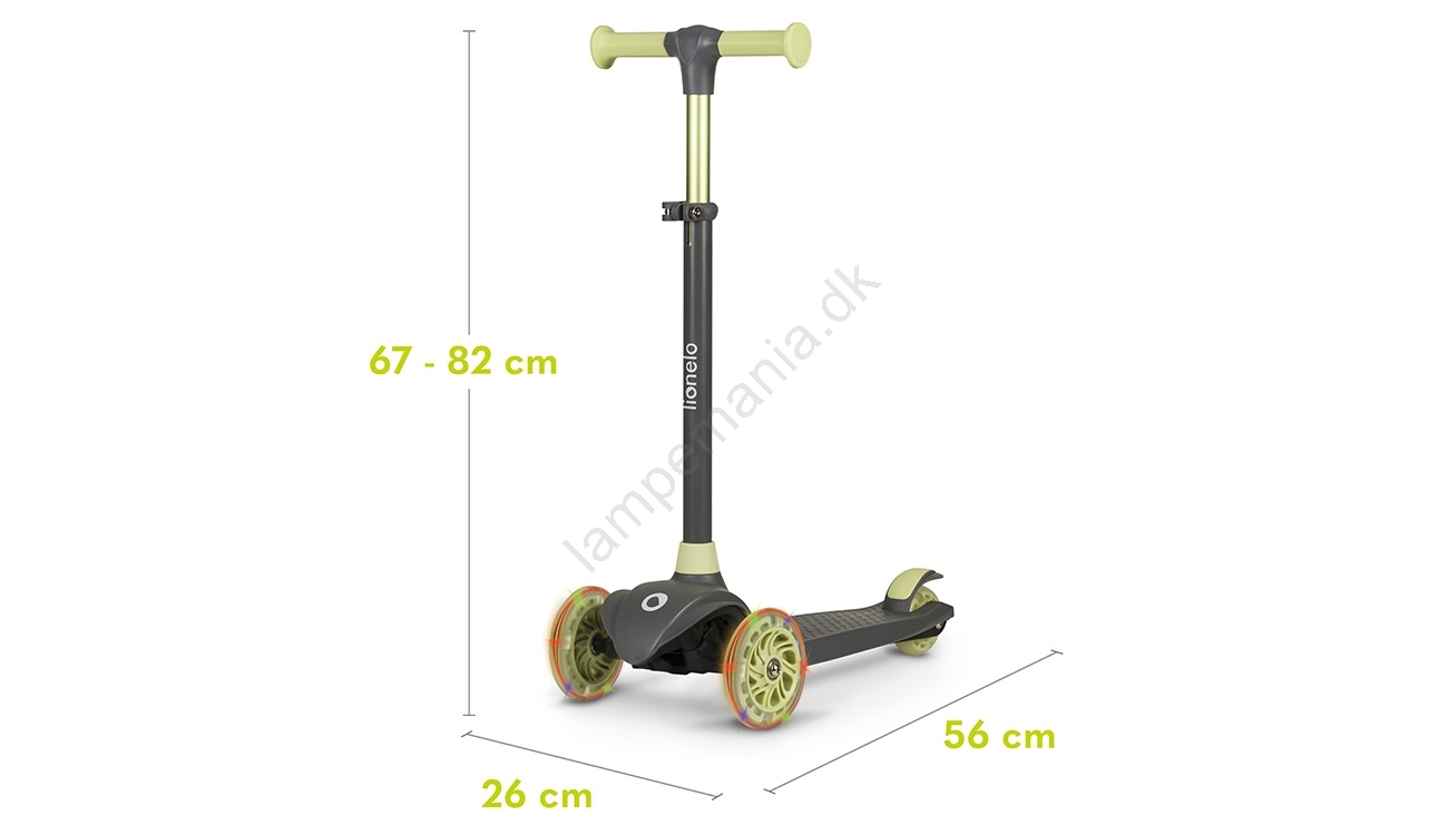 • LED-belysning i hjulene aktiveres under kørsel (3x AA-batterier medfølger ikke).