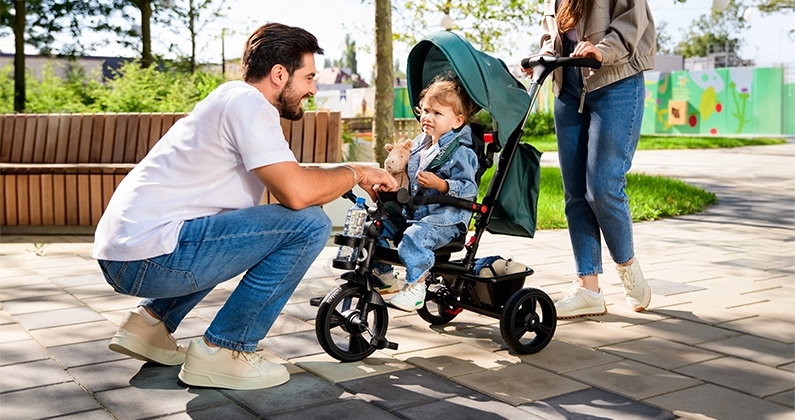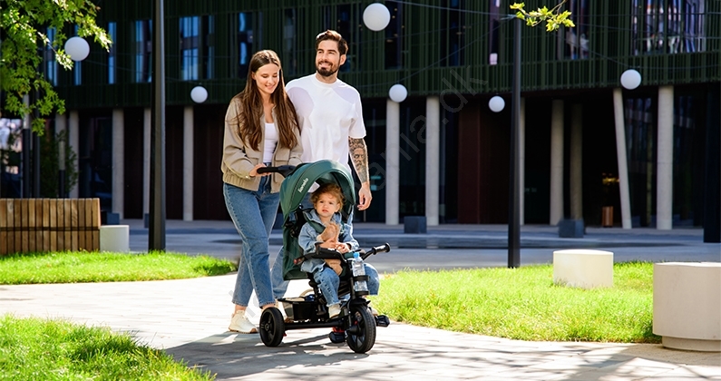 • HAARI er en trehjulet cykel med friløb, der er et fremragende alternativ til en klassisk klapvogn.