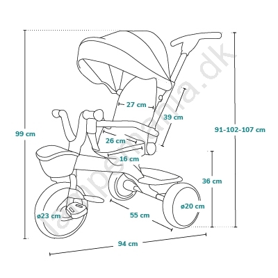 • Den vokser med dit barn - ønsker du at tilpasse den til barnets udviklingsfase, fjerner du blot de relevante elementer (sikkerhedsbøjle og håndtag) uden brug af værktøj.