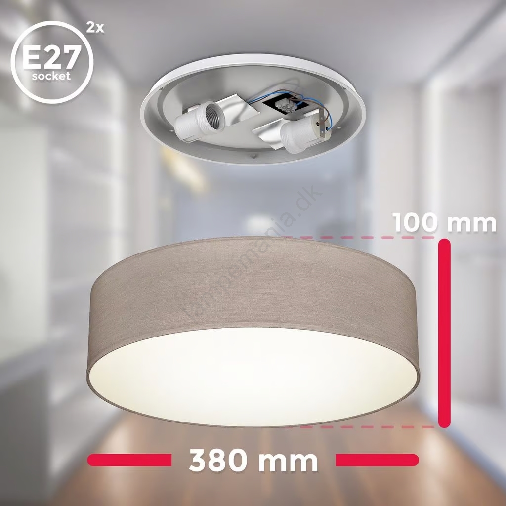 Loftlampe 2xE27/40W/230V Ø 38 cm beige er kendetegnet ved et flot og funktionelt design.  En lyspære med E27-fatning passer til denne lampe. Her kan du købe andre pærer til fordelagtige priser. Du får en interessant tilføjelse til dit hjem.