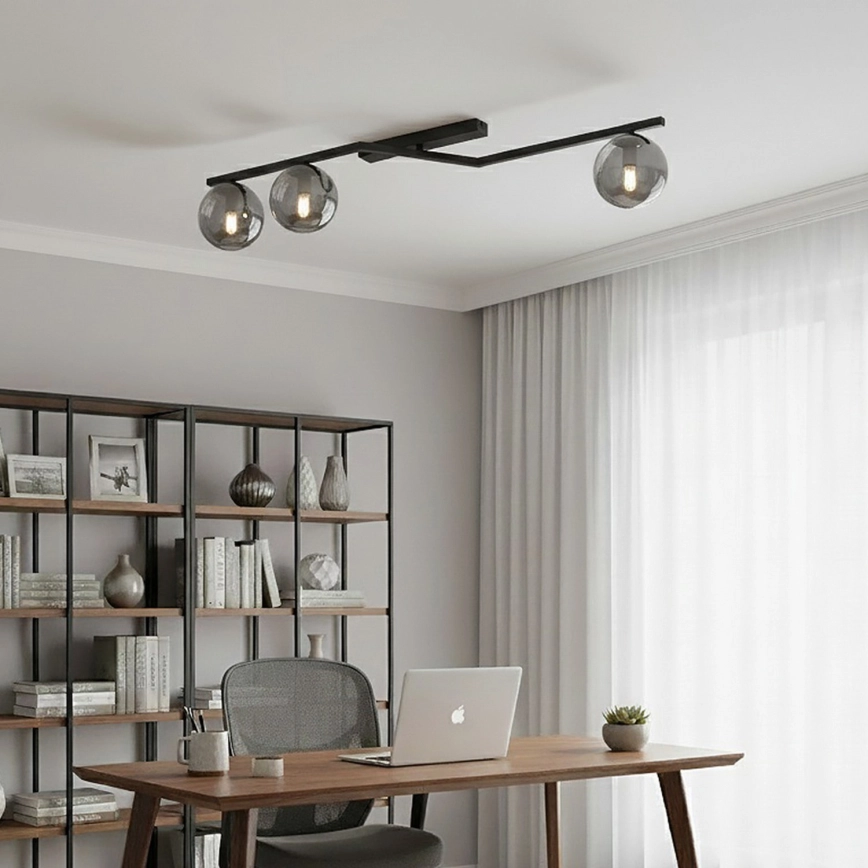 Loftlampe NATON 3xE14/10W/230V sort/røgfarvet