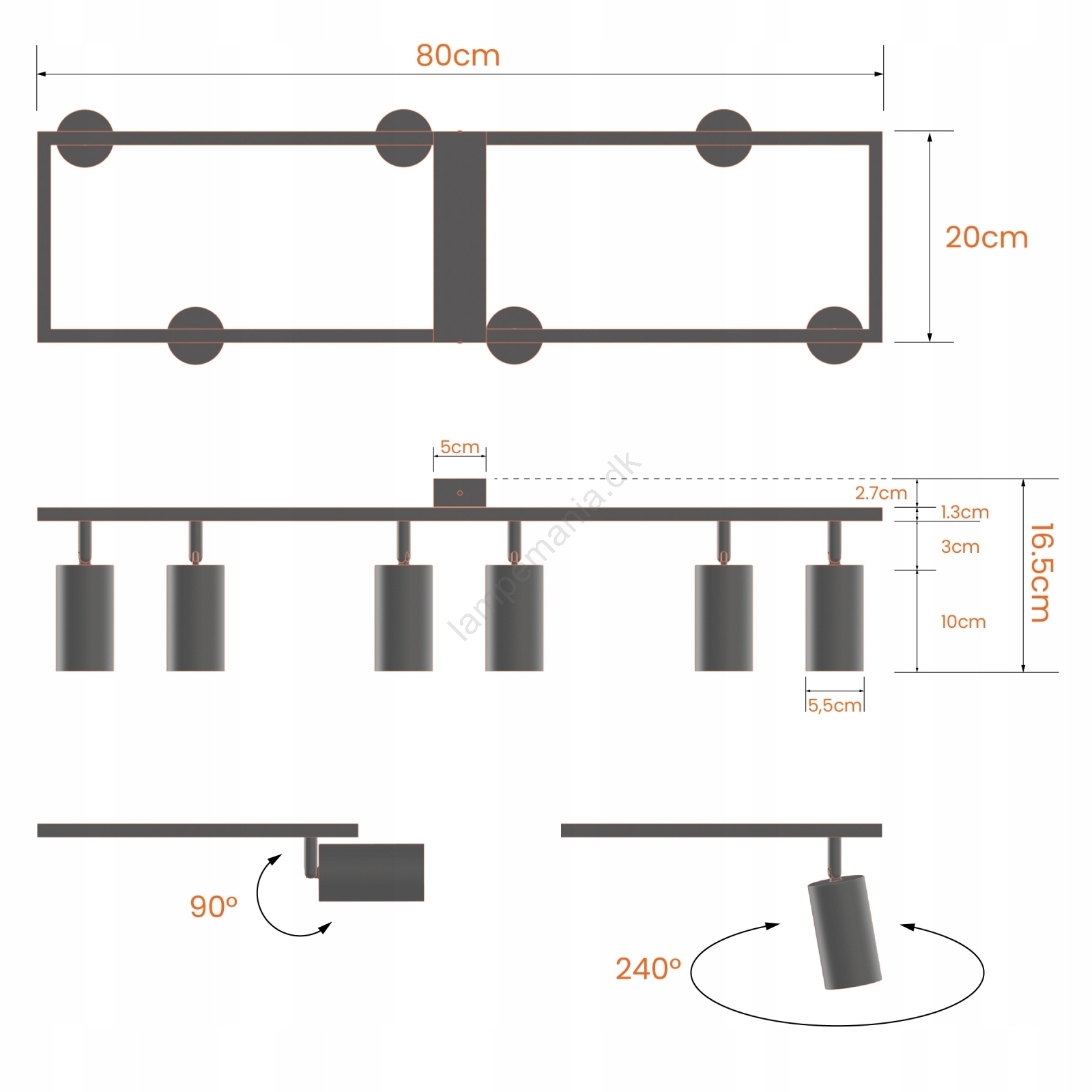 Loftspot 6 x GU10, 30 W, 230 V – sort er kendetegnet ved et flot og funktionelt design.  En lyspære med GU10-fatning passer til denne lampe. Her kan du købe andre pærer til fordelagtige priser. Du får en interessant tilføjelse til dit hjem.