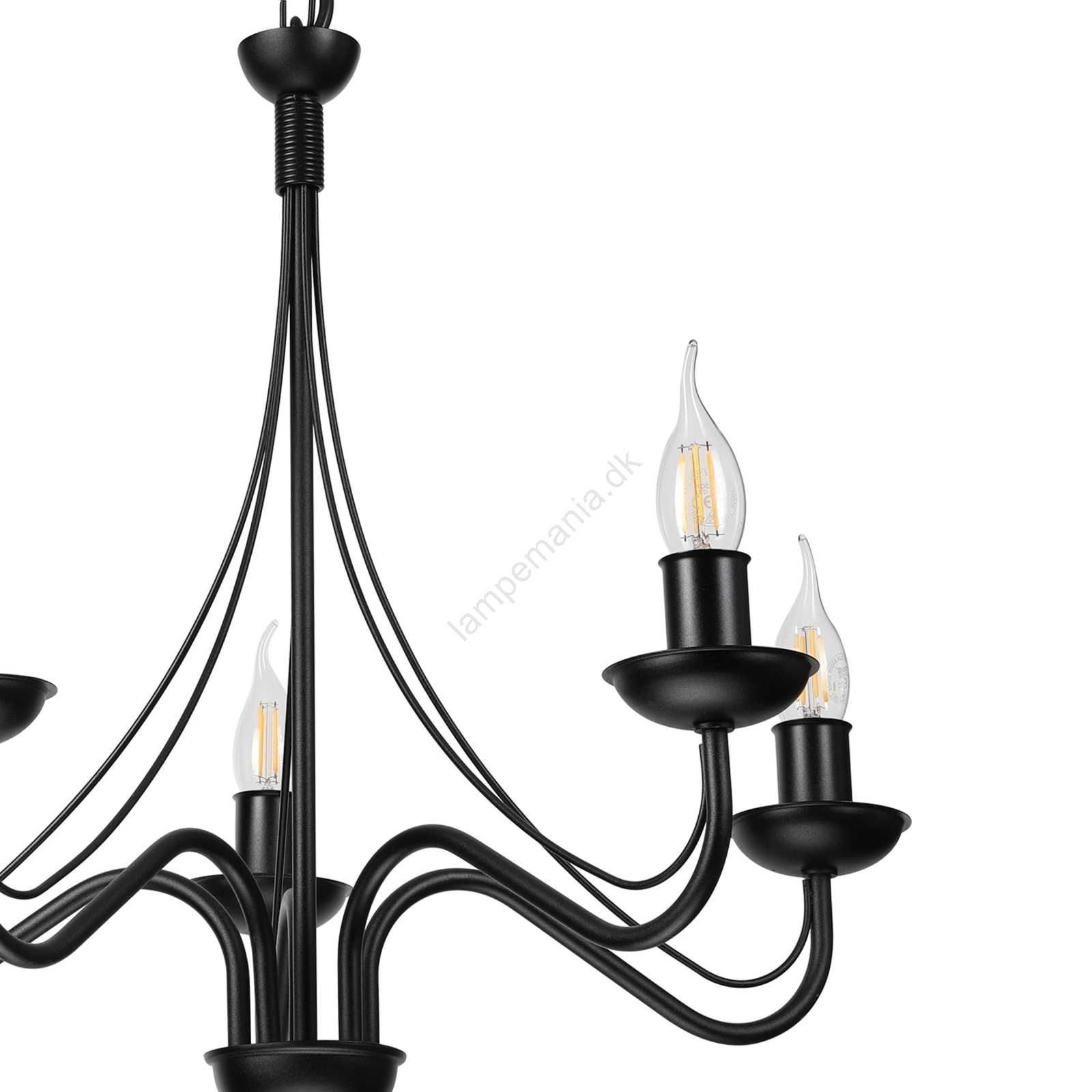 Lysekrone med kæde ANTON 5xE14/15W/230V sort er kendetegnet ved et flot og funktionelt design.  En lyspære med E14-fatning passer til denne lampe. Her kan du købe andre pærer til fordelagtige priser. Du får en interessant tilføjelse til dit hjem.