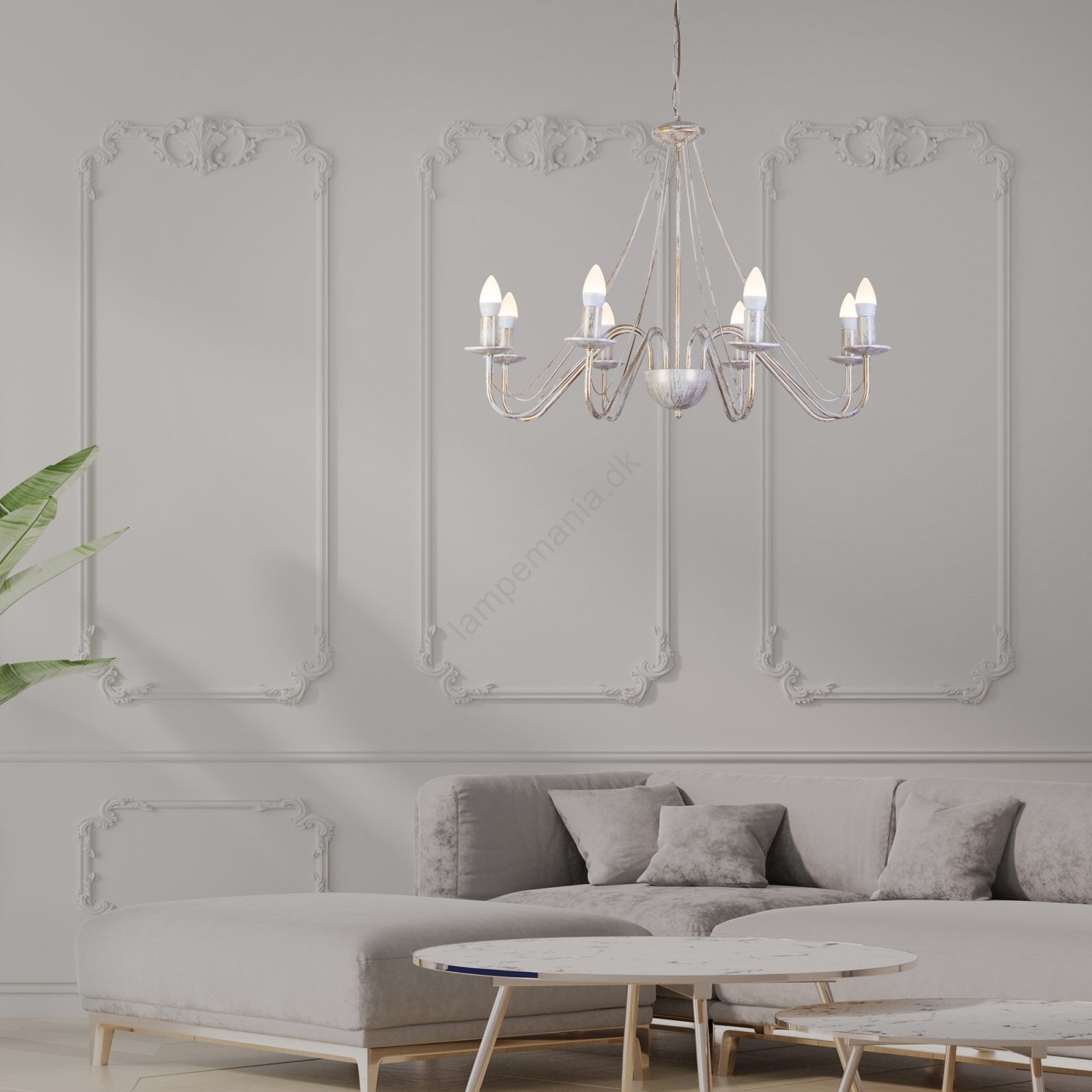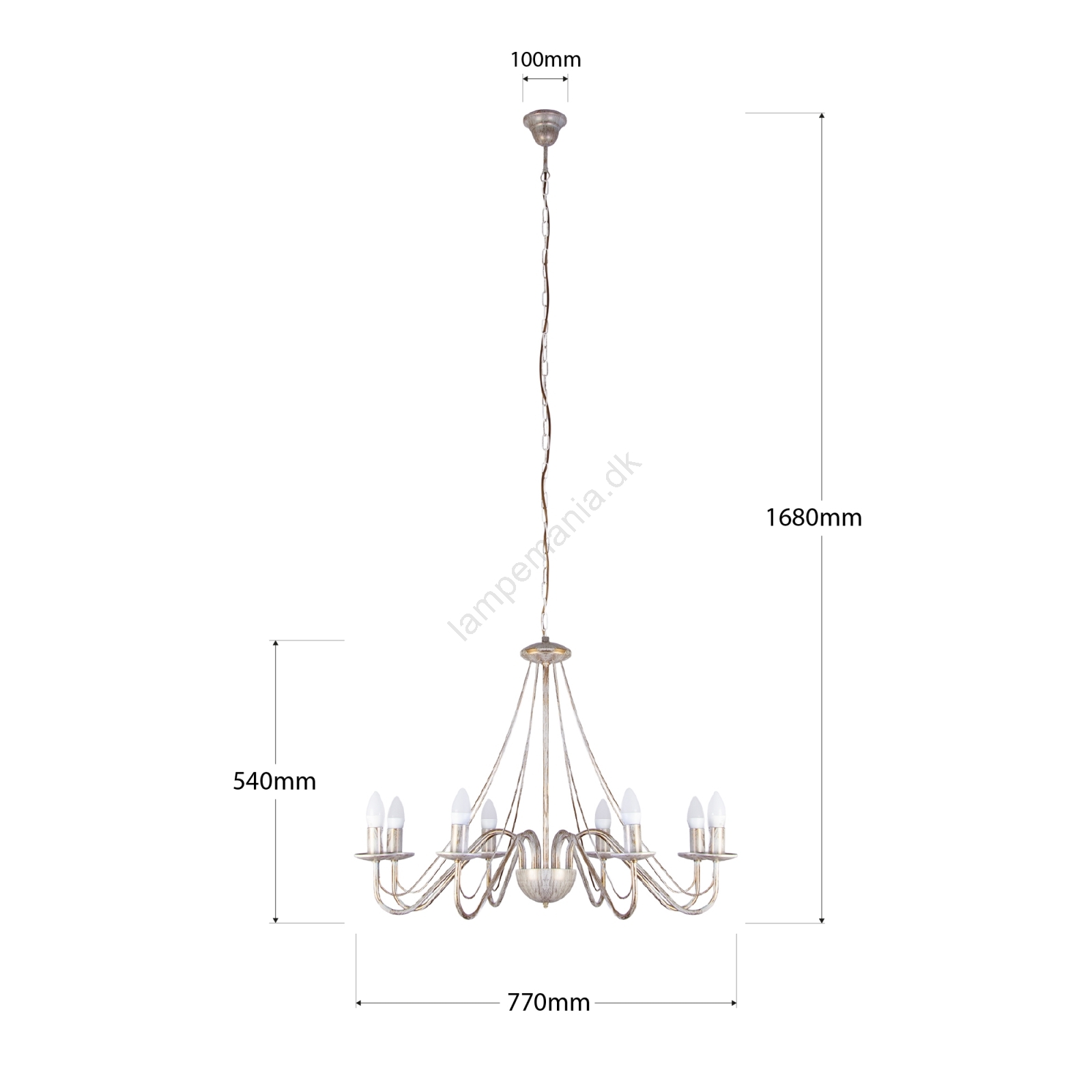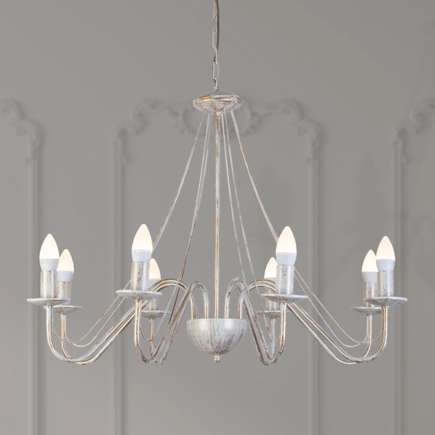 • Lysekrone med kæde MALBO 8xE14/10W/230V hvid/guld/patina