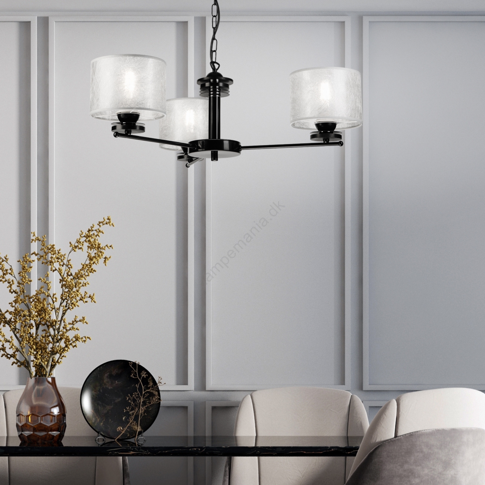 Lysekrone på kæde ROSA 3xE27/60W/230V sort/grå er kendetegnet ved et flot og funktionelt design.  En lyspære med E27-fatning passer til denne lampe. Her kan du købe andre pærer til fordelagtige priser. Du får en interessant tilføjelse til dit hjem.