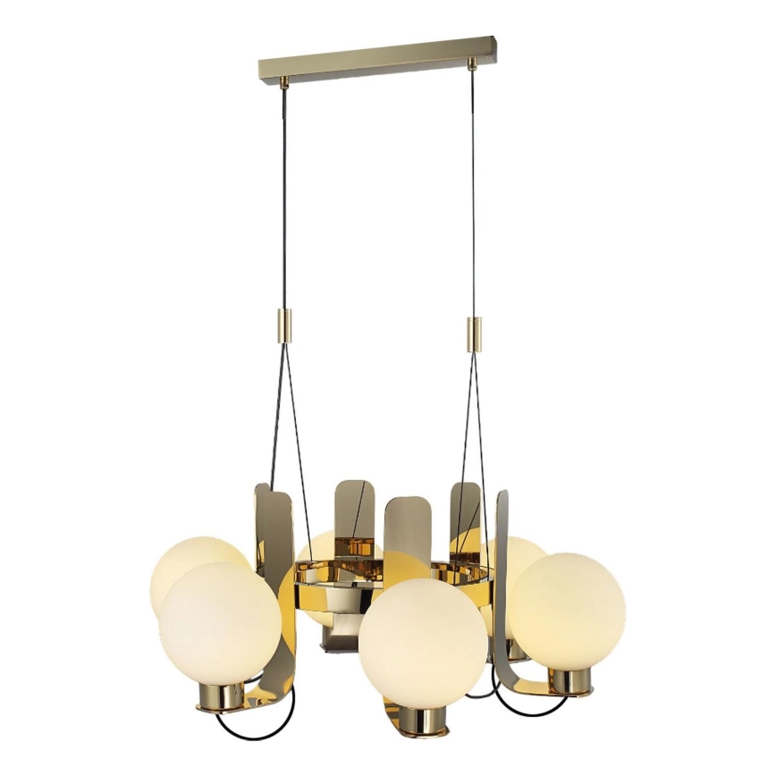 Lysekrone på ledning REGGIO 6xE27/40W/230V guldfarvet er kendetegnet ved et flot og funktionelt design.  En lyspære med E27-fatning passer til denne lampe. Her kan du købe andre pærer til fordelagtige priser. Du får en interessant tilføjelse til dit hjem.