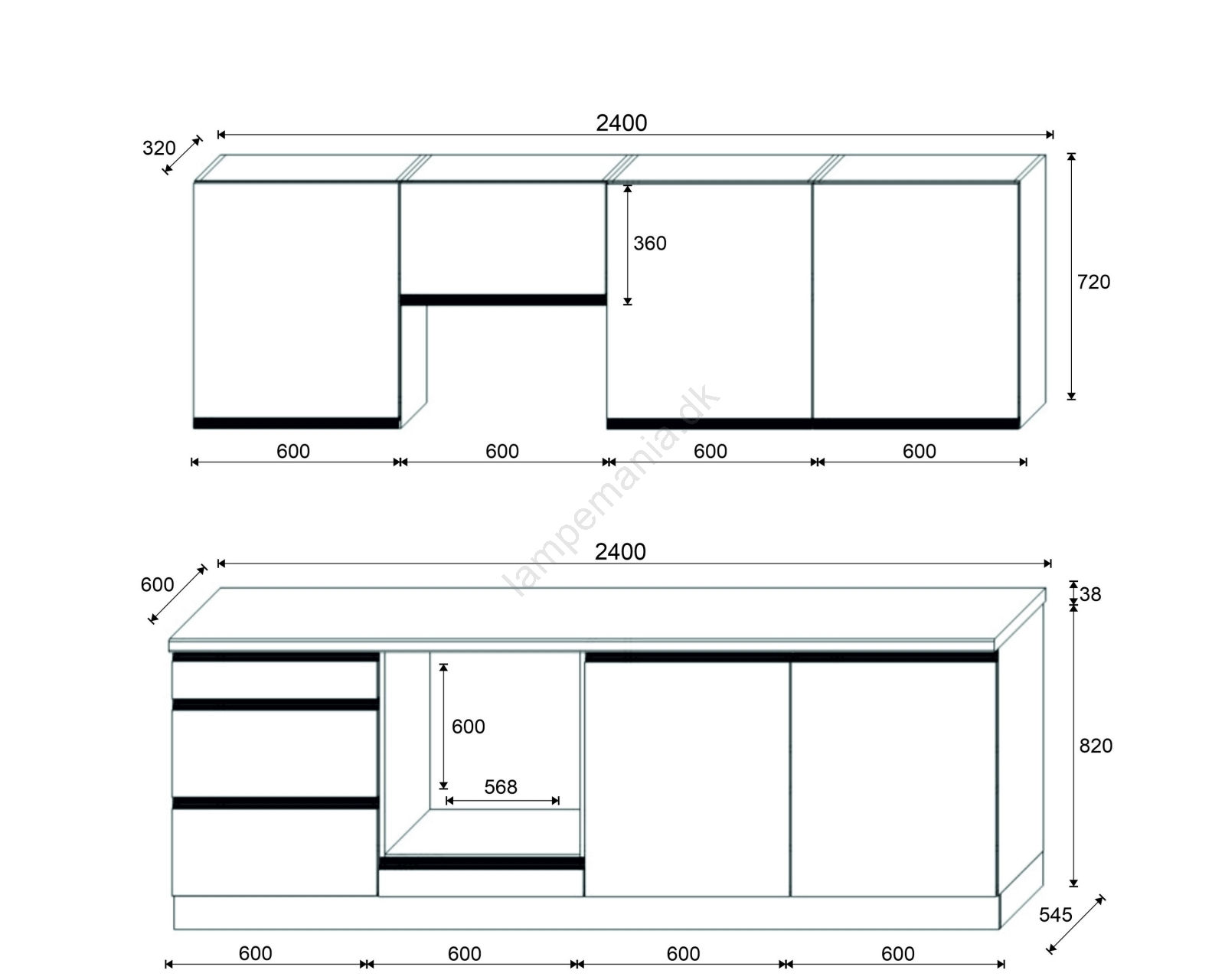 • Opstillingen af skabene er modulær, du kan tilpasse køkkenet efter dine egne ønsker.