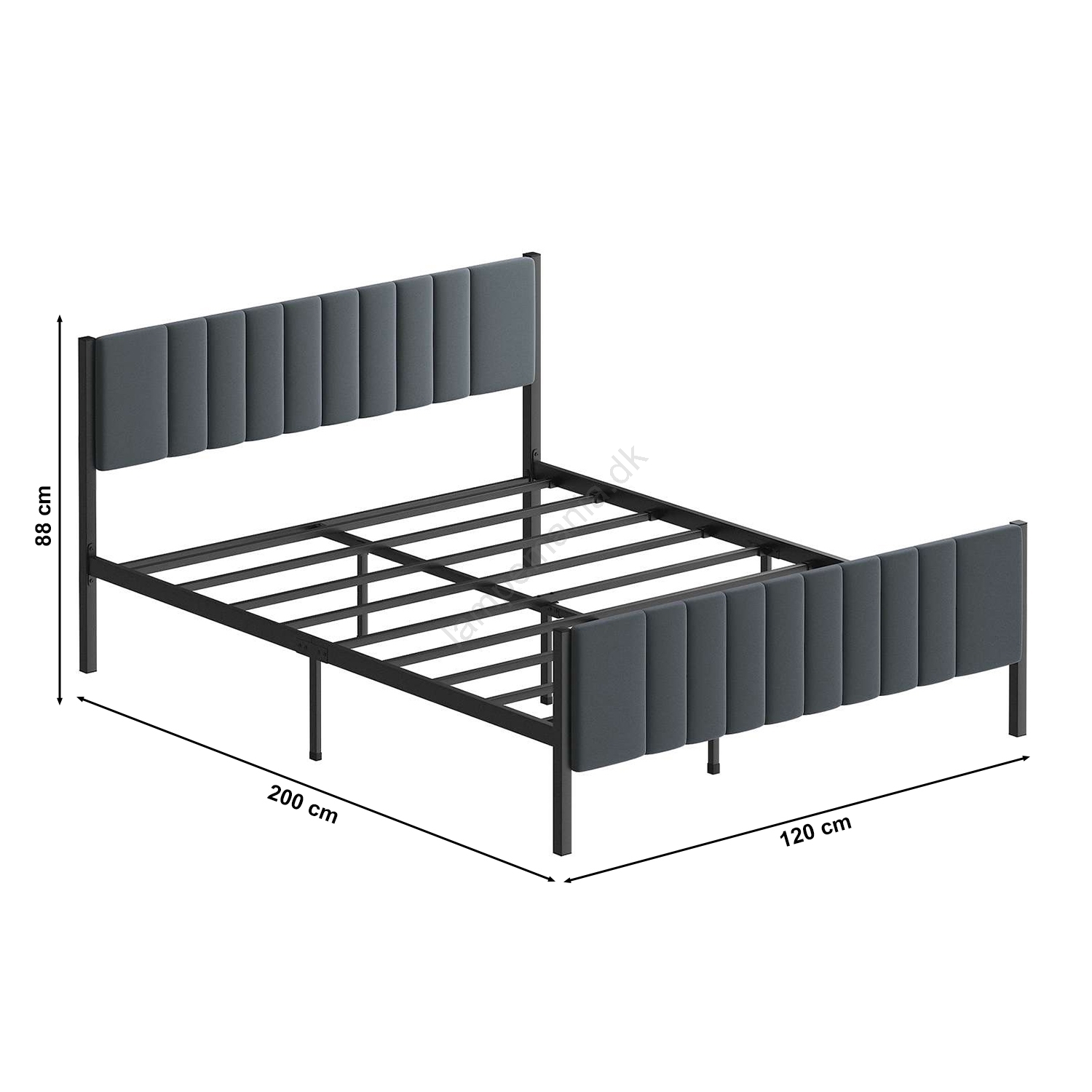 • Metal dobbeltseng KAROM 120x200 cm, grå, maks. belastning 120 kg