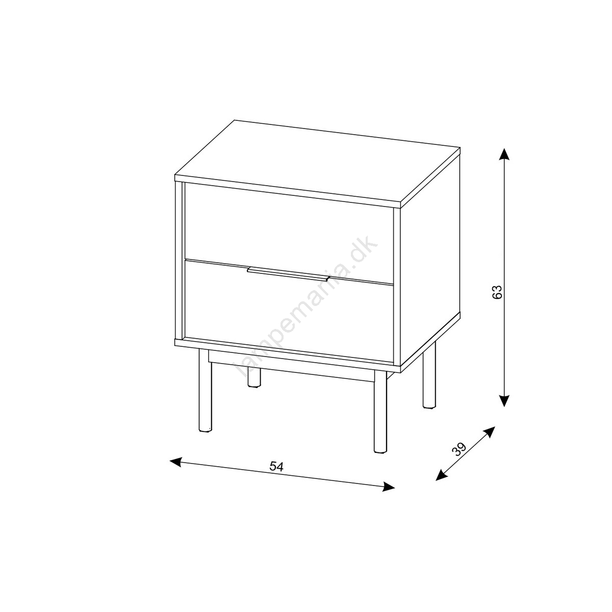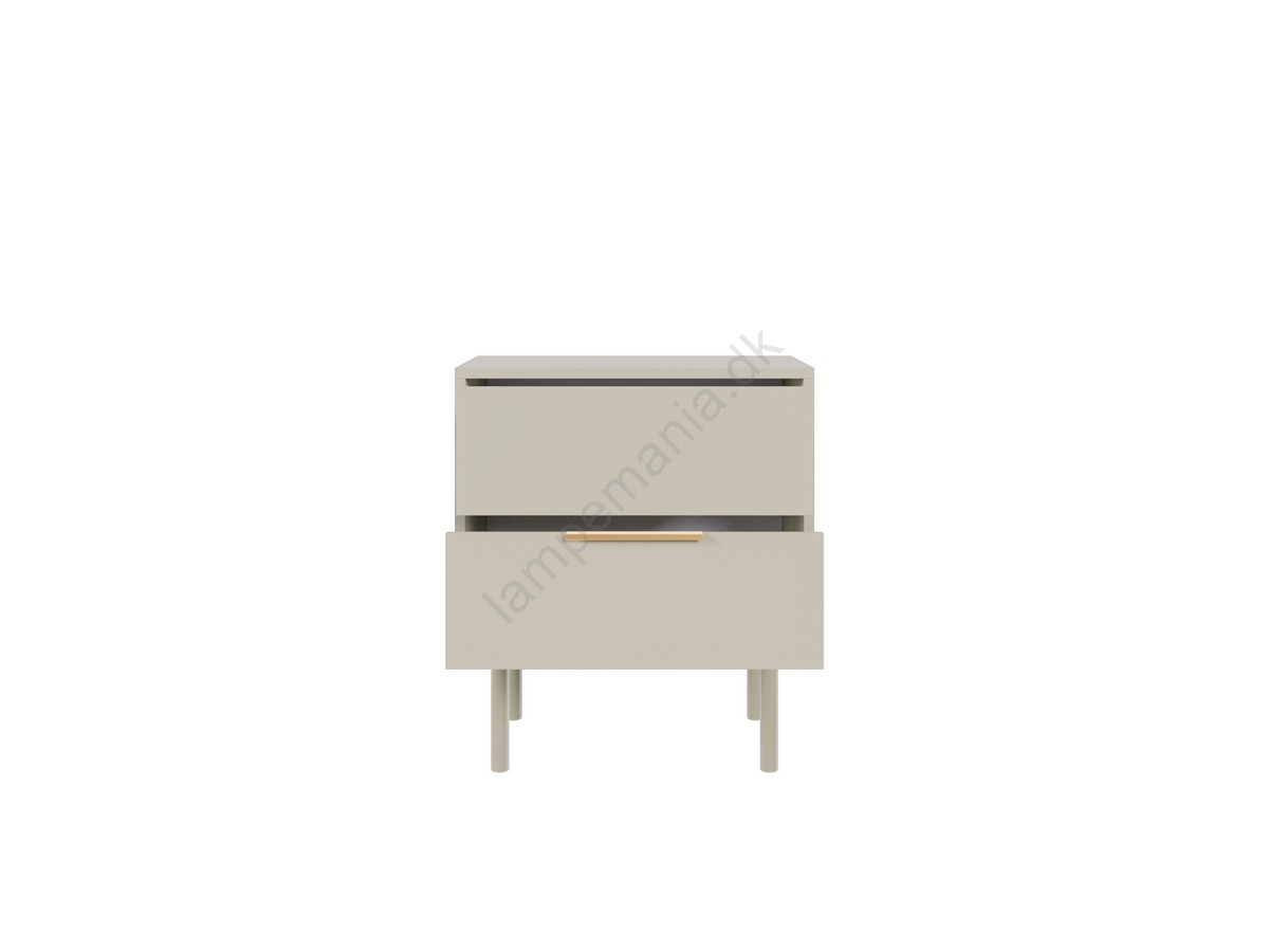 • Den har to skuffer, den nederste med greb og den øverste uden greb for et minimalistisk og rent udtryk.