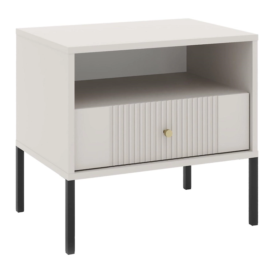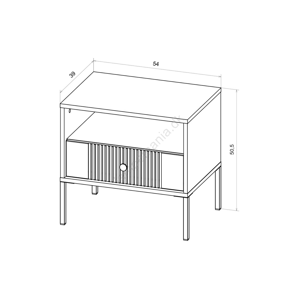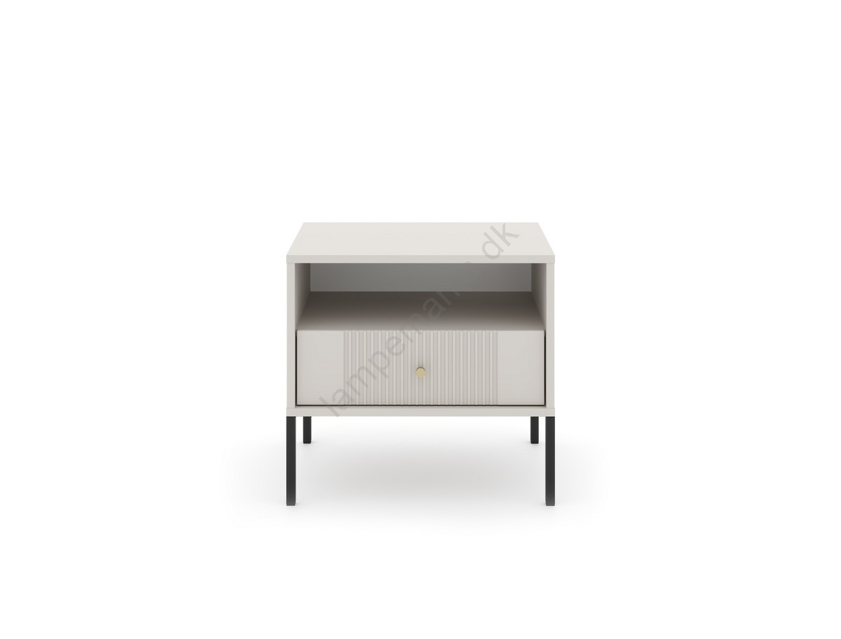 • Den har en åben hylde og en skuffe med vertikale riller for en raffineret visuel effekt.