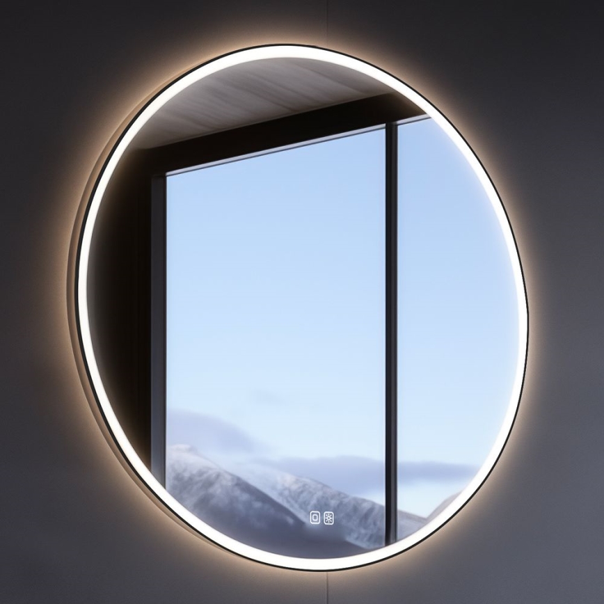 NIMCO ZPC 28001RVX-90 - LED-dæmpbart badeværelsesspejl med baggrundsbelysning LED/33W/230V 3000–6500K Ø 70 cm mat sort IP44