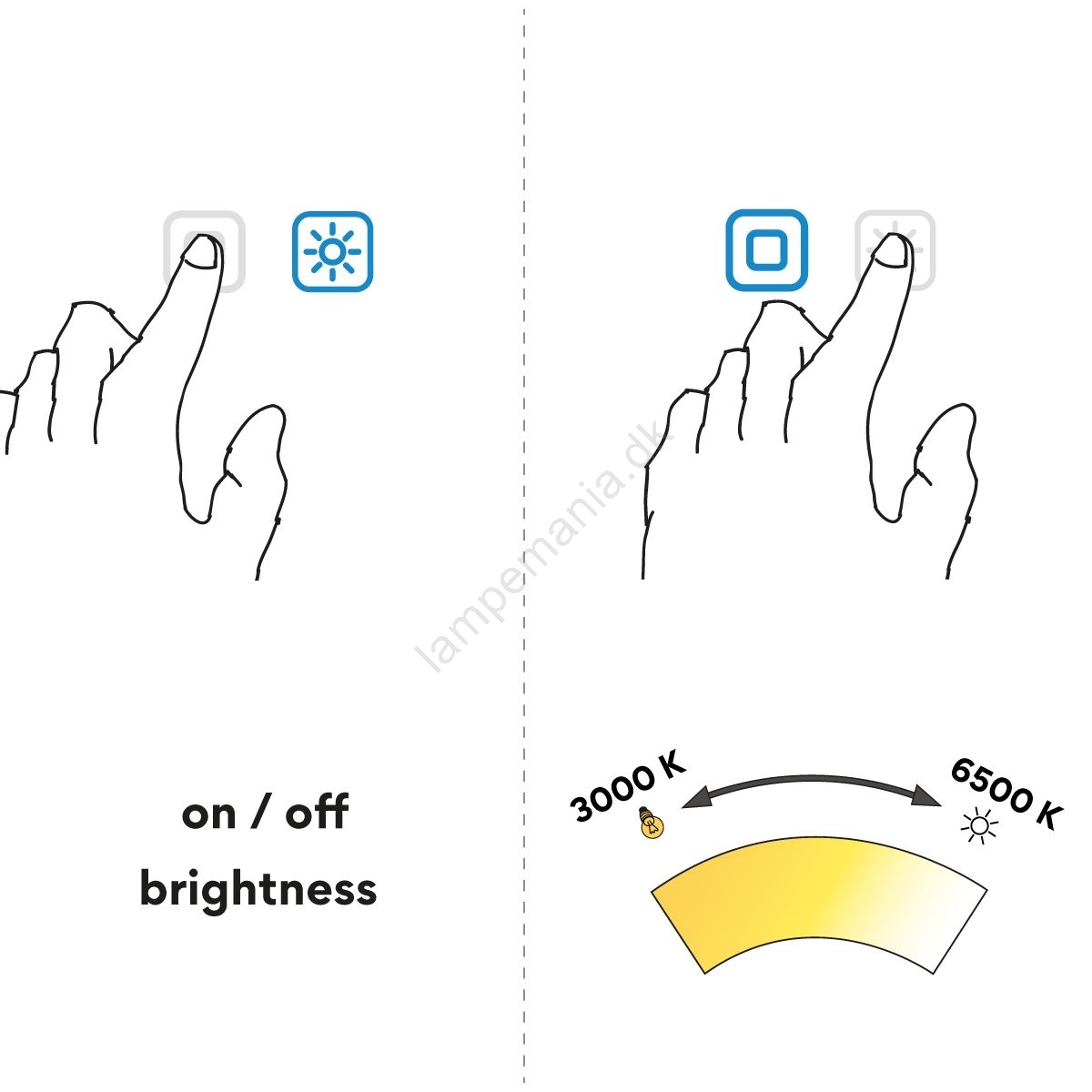 • Trinløs indstilling af både lysstyrke og farvetemperatur.