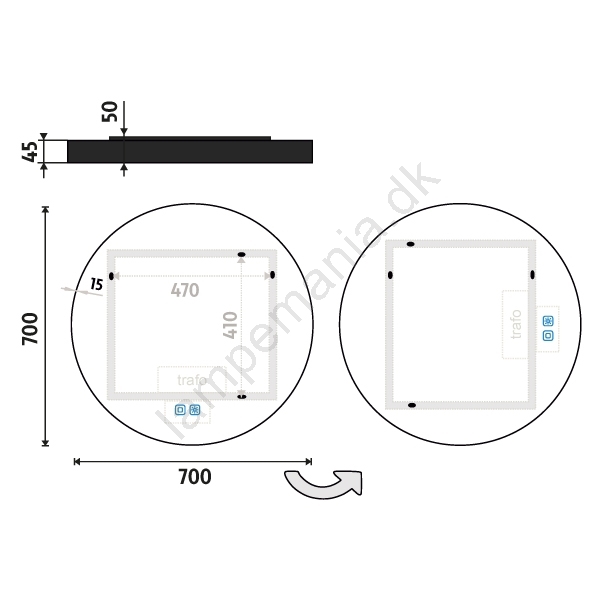 • Spejlet har også en hukommelsesfunktion, der husker den seneste lysindstilling og farvetemperatur.
