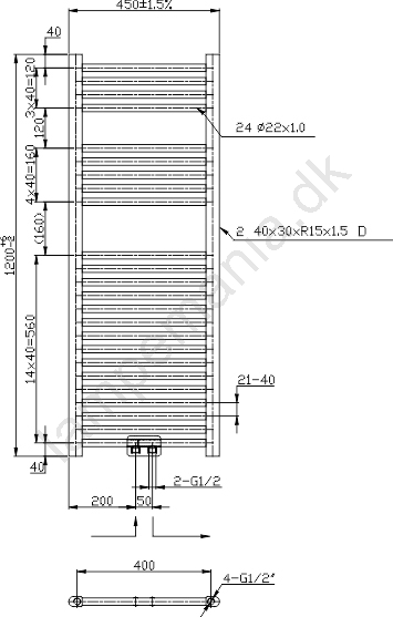 Novaservis - Badeværelses håndklæderadiator 490 W/230 V, 120 x 45 cm, sort, lige