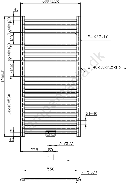 Novaservis - Håndklædetørrer til badeværelse 423W/230V 120x60 cm blank krom lige