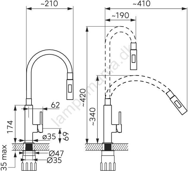• Det praktiske fleksible udtræksrør gør opvasken og rengøringen af vasken nemmere.