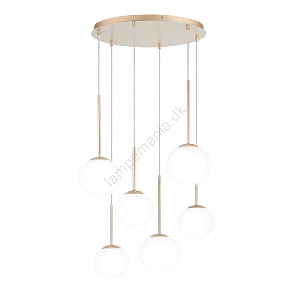 Ondaluce - Lysekrone på wire JEWEL 6xE14/10W/230V Ø 55 cm guld/hvid er kendetegnet ved et flot og funktionelt design.  En lyspære med E14-fatning passer til denne lampe. Her kan du købe andre pærer til fordelagtige priser. Du får en interessant tilføjelse til dit hjem.