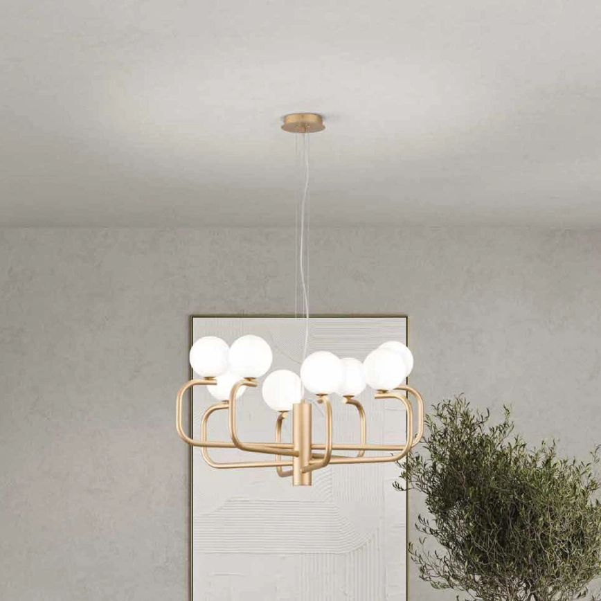 Ondaluce - Pendel med wire JEPPY 8xG9/7W/230V Ø 78,5 cm guld/hvid